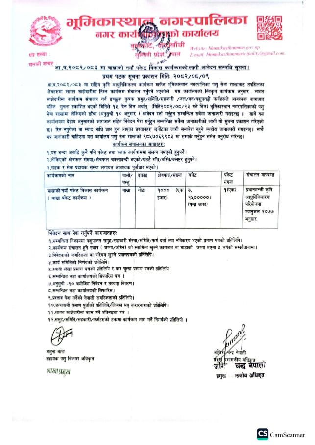 आ.व. २०८२/०८३ मा बाख्राको नयाँ पकेट विकास कार्यक्रमको लागि आवेदन सम्बन्धी सूचना ।
