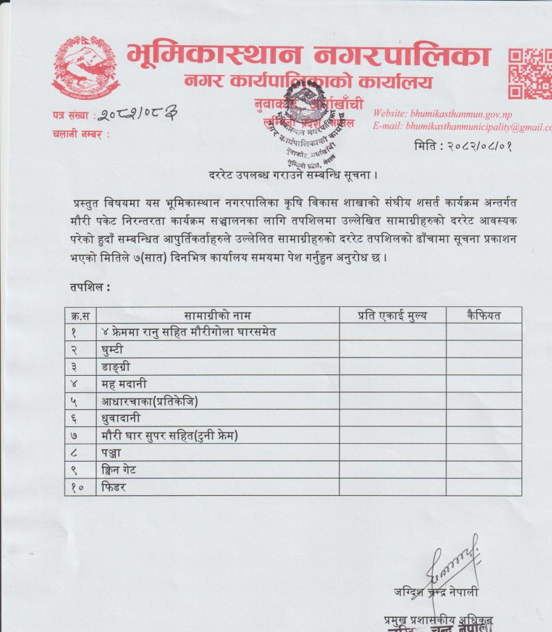 बोलपत्र आह्वान सम्बन्धी सूचना (प्रशासकीय भवन) २०८२.०६.१०