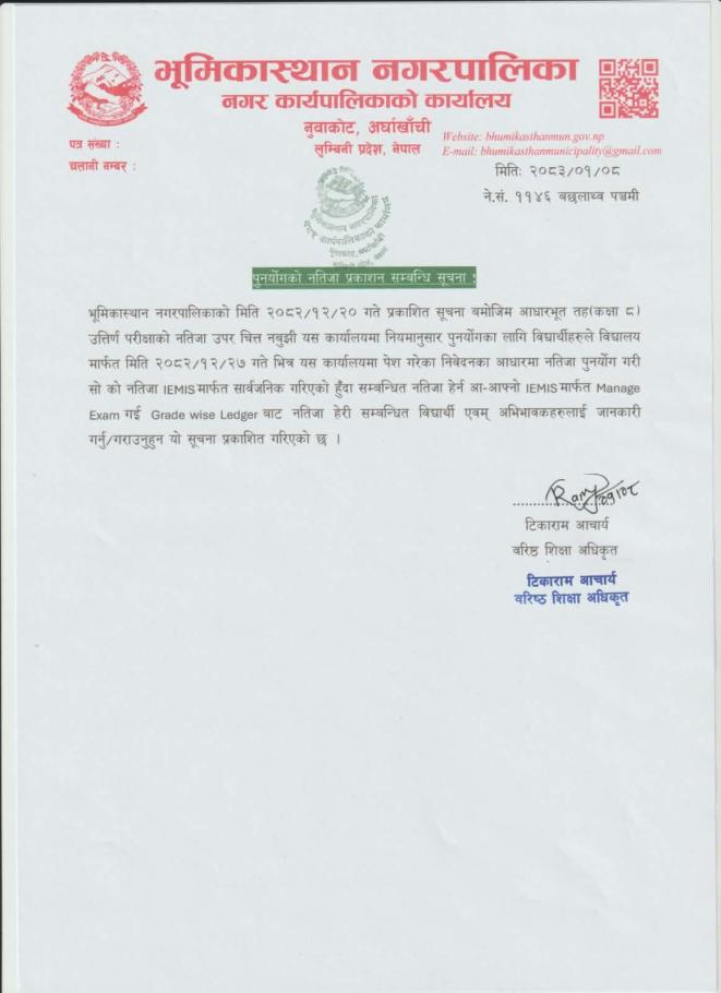 पुनर्योगको नतिजा प्रकाशन सम्बन्धी सूचना।