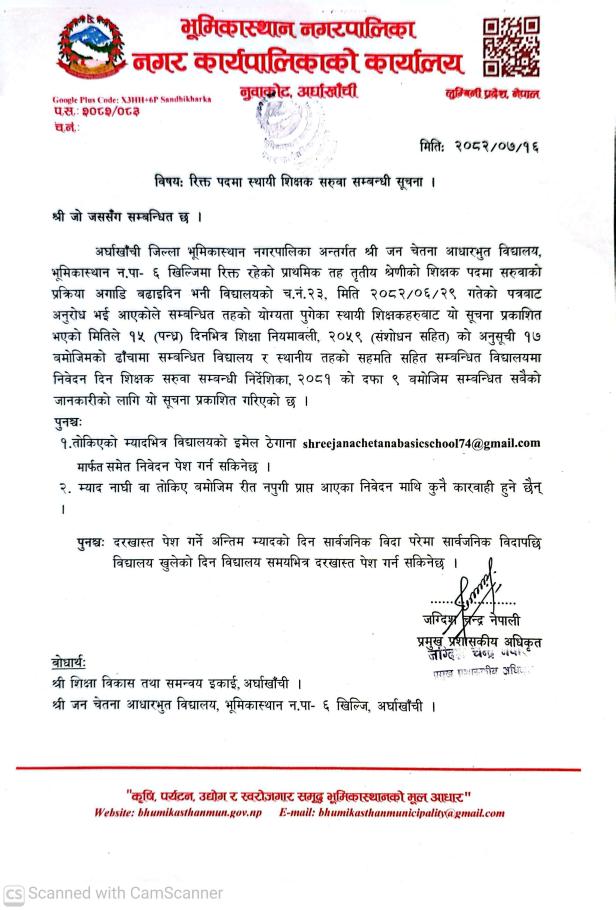रिक्त पदमा स्थायी शिक्षक सरुवा सम्बन्धी सूचना ।