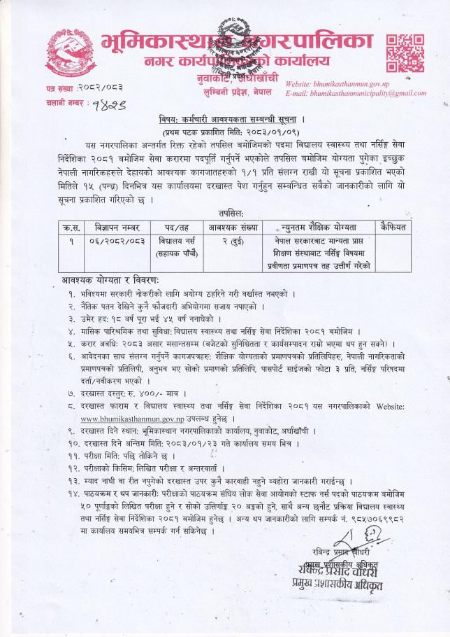 कर्मचारी आवश्यकता सम्बन्धी सूचना ।