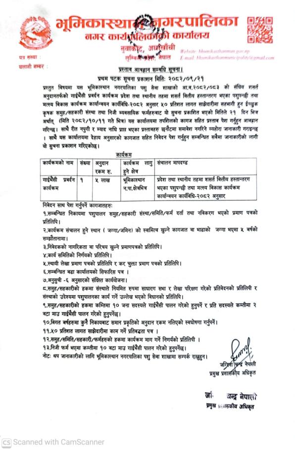 दरभाउपत्र आह्वान सम्बन्धी सूचना Contract ID 15/BMA/G/LM/2082/083 Procurement and Supply of Livestock Medicine and Second Notice of Contract ID 12 and 13 Dhondkhola Sengleng Motorable Road and Khadkare Birouta Sinchai