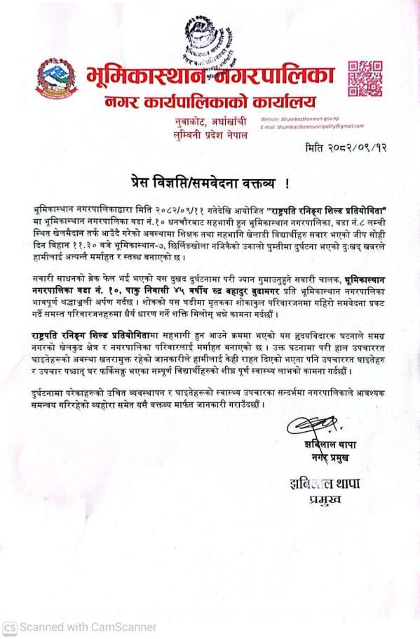 प्रेस विज्ञप्ति/ समवेदना वक्तव्य ।