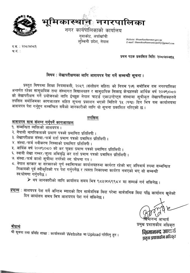 लेखापरीक्षणका लागि आशयपत्र पेश गर्ने सम्बन्धी सूचना ।
